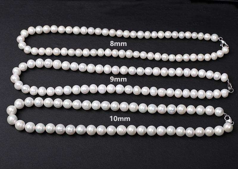 Discover the enduring allure of our Natural Freshwater Pearl Strand Necklace, a versatile piece that embodies refined elegance. Each necklace features a continuous strand of lustrous natural freshwater pearls, carefully selected for their radiant glow and perfectly round shape. The pearls are meticulously hand-knotted on durable silk thread, ensuring both beauty and security, and are secured with an elegant 925 Sterling Silver clasp.